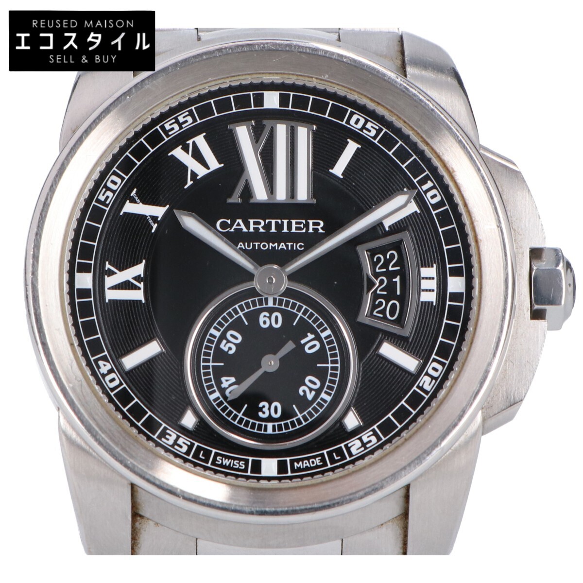 > Cartier カルティエ W7100016 AT カリブルドゥカルティエ ブラック文字盤 腕時計 - シルバー メンズ 修理証明書付属