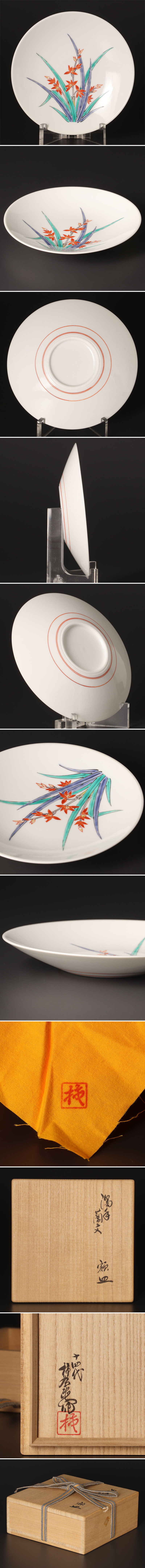 > 【古美味】人間国宝 十四代酒井田柿右衛門作 濁手蘭文額皿 茶道具 保証品 6bPI