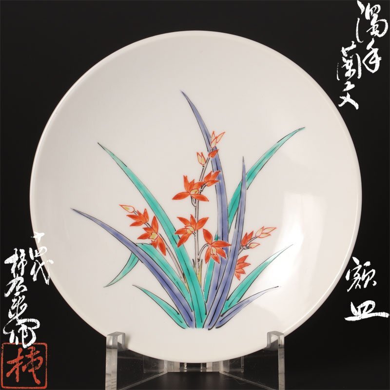 - 【古美味】人間国宝 十四代酒井田柿右衛門作 濁手蘭文額皿 茶道具 保証品 6bPI