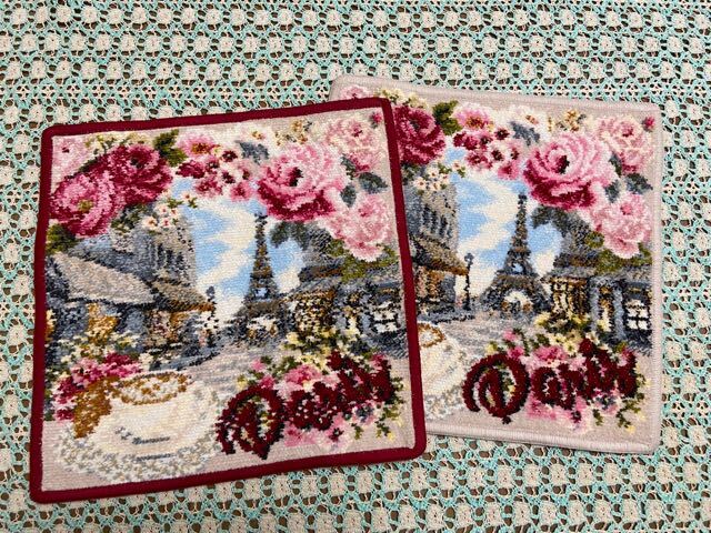 > ♪新品 フェイラー FEILER タオルハンカチ 2枚 Rue de Paris パリの街 エッフェル塔 ベージュとボルドー