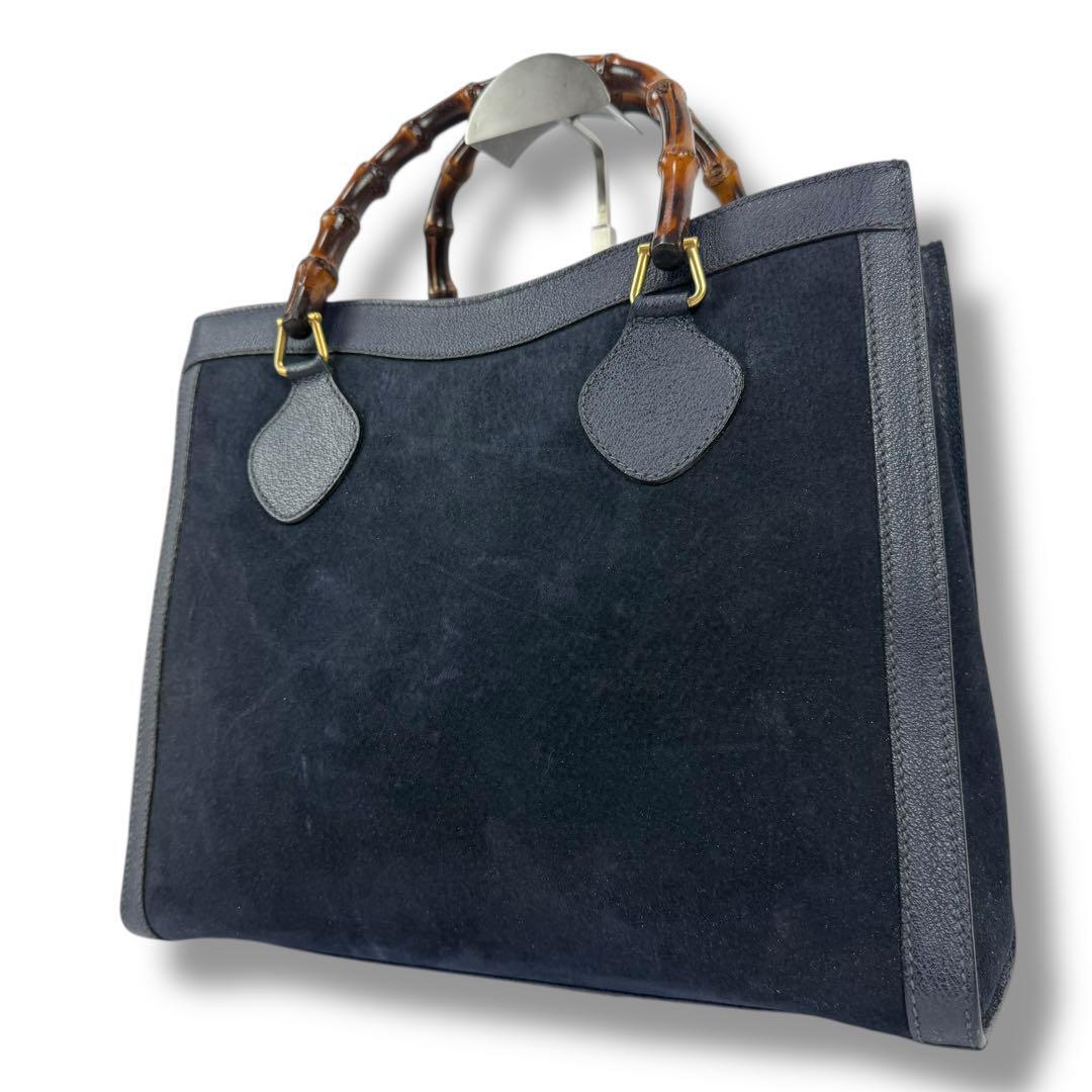 - 【A4対応/002・2853】GUCCI グッチ バンブー ダイアナ ハンド トート バッグ スエード スウェード レザー 本革 ネイビー 紺色 ブラック 黒