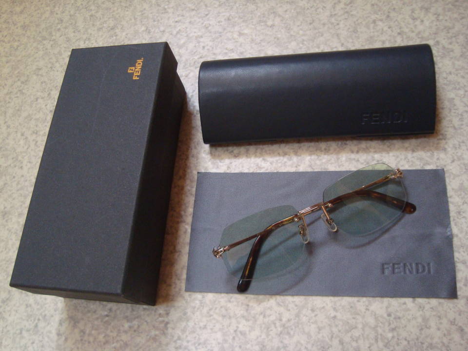- FENDI ツーポイント FE-57 56□16-140 ゴールド/グリーングラデ 度なしサングラス フェンディ リムレス 純正クロス 純正ケース入り 未使用
