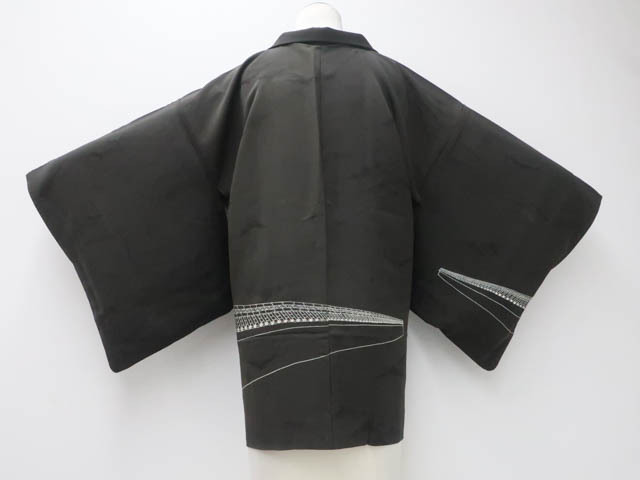 - 《古美術京松》【着物】アンティーク 黒羽織 軒瓦柄 羽織紐付 リメイク 身丈約77.5cm 裄丈約65.5cm kyo7z06-515