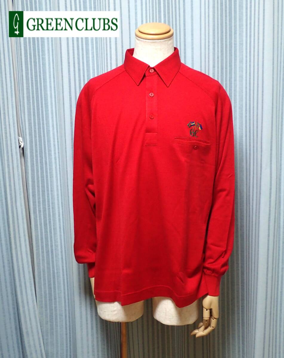 > ☆GREEN CLUBS ☆グリーンクラブ ☆ライカ ☆日本製 ☆ゴルフウエア ☆長袖ポロシャツ ☆レッド ☆メンズ ☆サイズ5