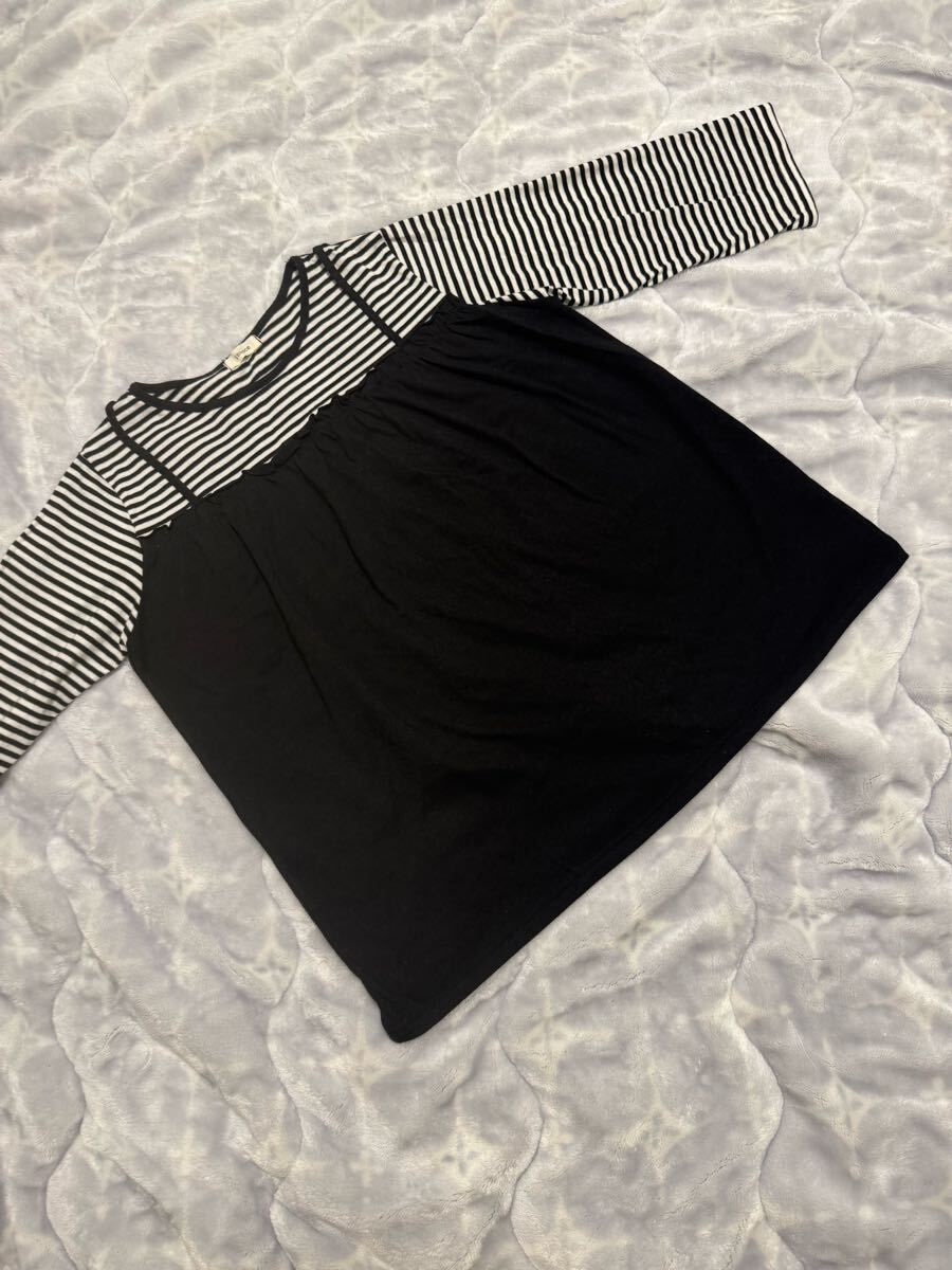 > innocce 長袖Tシャツ カットソー チュニック ボーダー 黒 ブラック ロンT キャミソールドッキング L しまむら ユニクロ GU