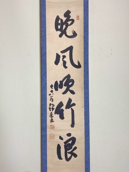 - 《魚亀》【模写】深谷錦岳「晩風吹竹浪」紙本 書 茶掛 茶道具 絵画 掛軸 掛け軸 中国 人が書いたもの