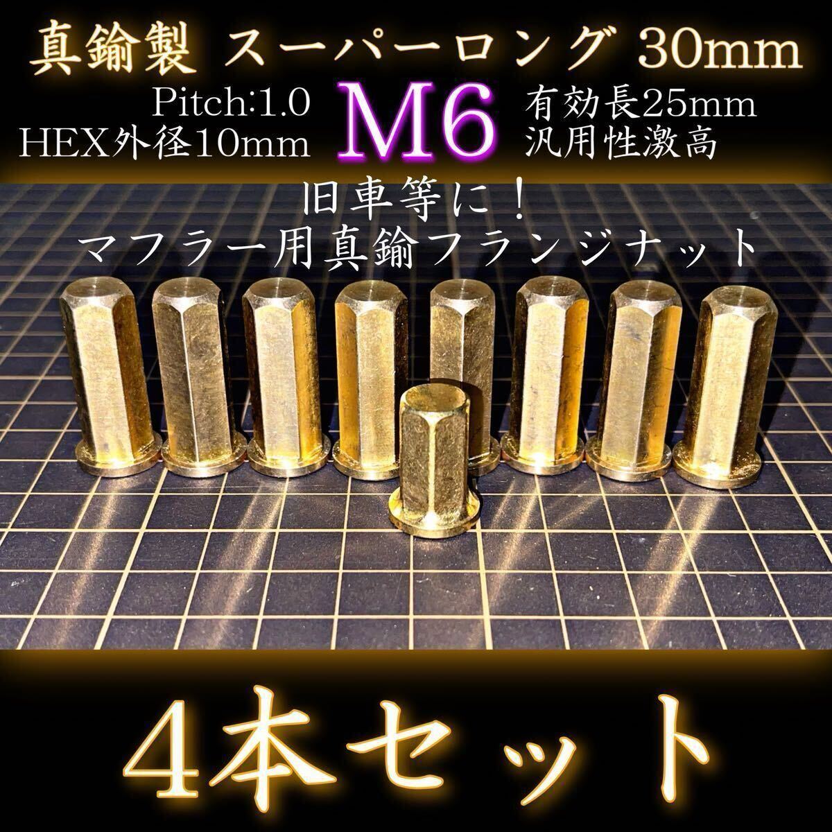 > M6 真鍮ナット 4本 真鍮鋼製 スーパーロング マフラー フランジナット マフラー 固定 P1.0 CBR400F CBX400 hawk2 ホーク2 バブ ホーク3