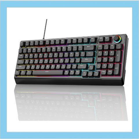 - 【心地よい打鍵感】ゲーミングキーボード USB有線接続 テンキー付 ノブ操作