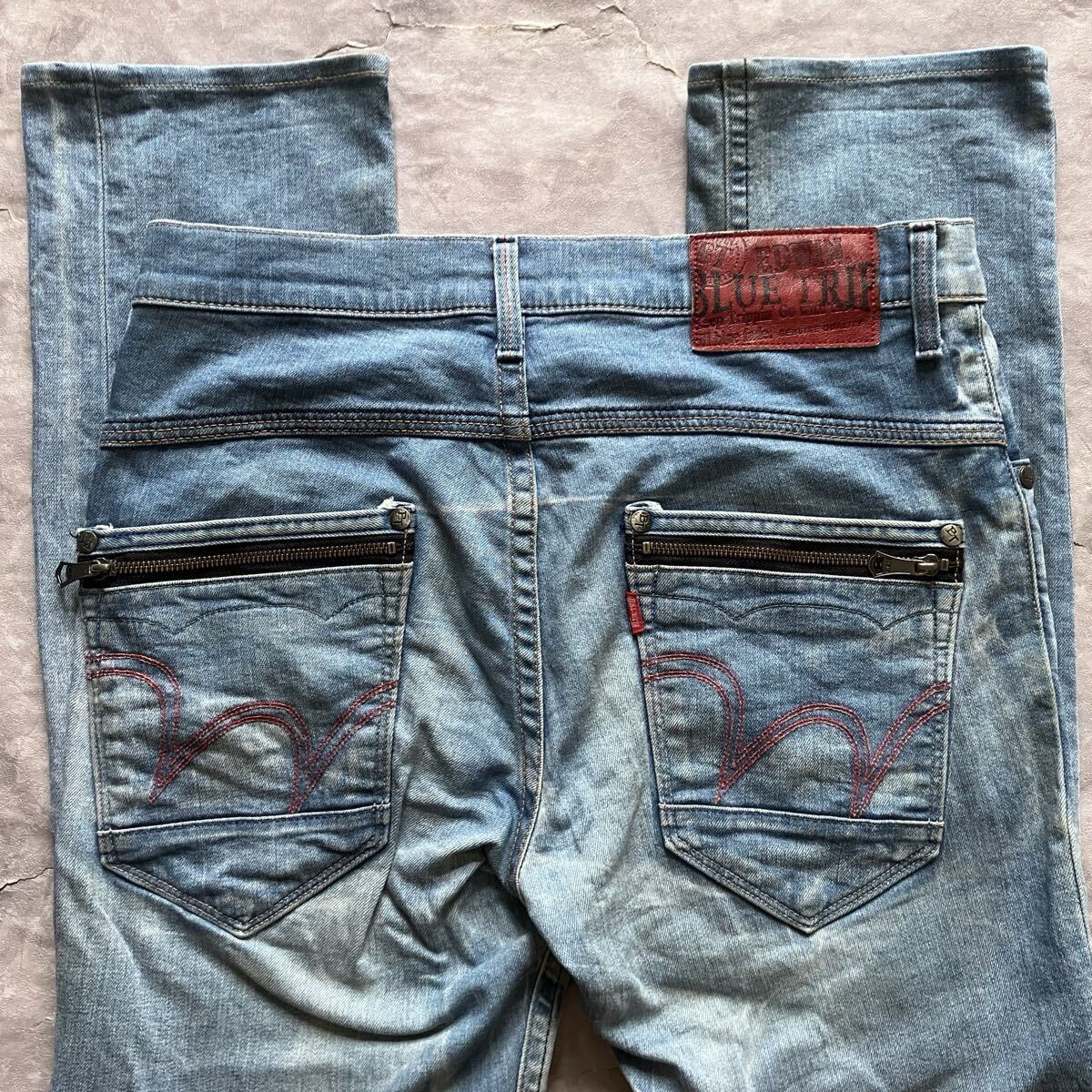 - 即決 W32 エドウィン EDWIN EB0006 ストレッチ デニム ライトブル 日本製 MADE IN JAPAN タイト ジップポケット ユーズド加工 g9