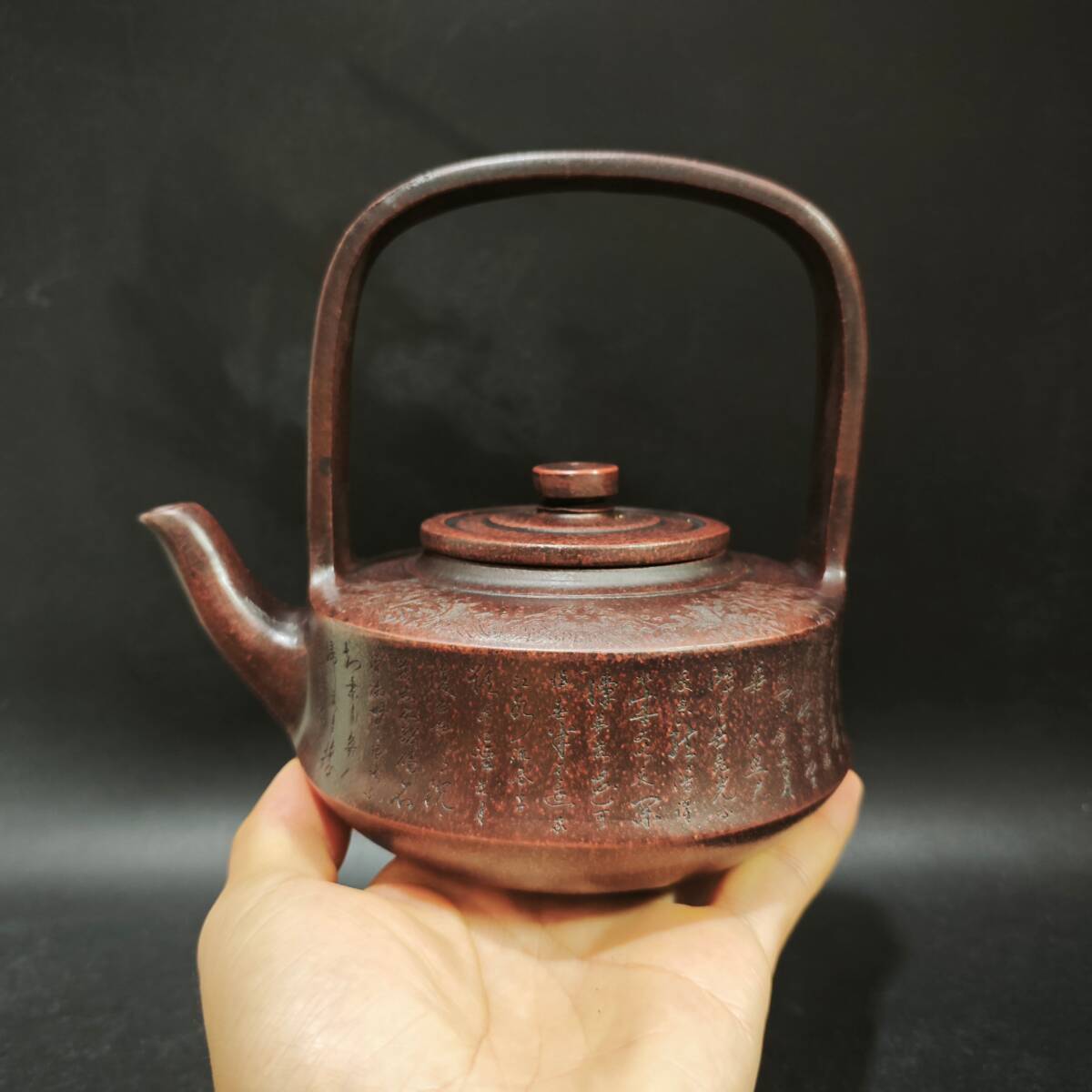 - 『館蔵珍品 紫砂壺 提壁壺 顧景舟款 古紅泥 紫砂壺 茶具 茶道品』稀少珍蔵品 古賞物 貴重物品 収蔵品 中国古美術 時代物 古董品