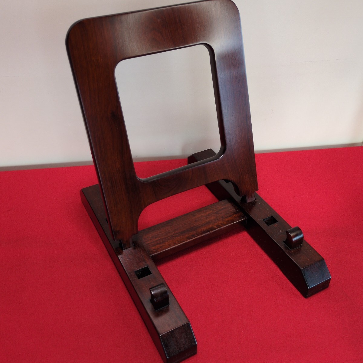 - 2510-12 北海道民芸家具 木製組込 皿立て アンティーク 当時物 飾り台 額立て スタンド