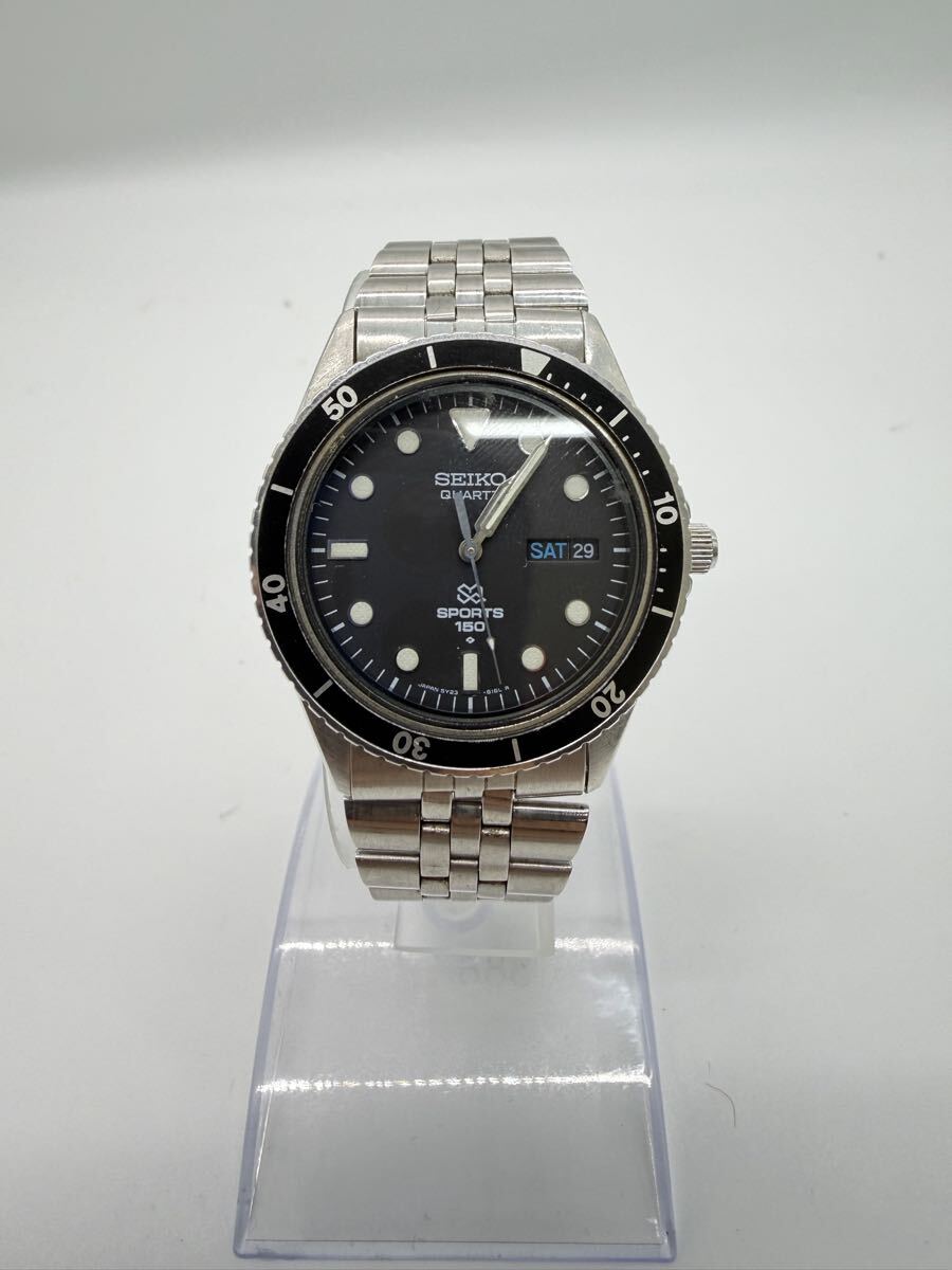 - 【稼働品】SEIKO セイコー SQ SPORTS 150 腕時計 クォーツ メンズ ブラック文字盤 ダイバーズ風 日本製