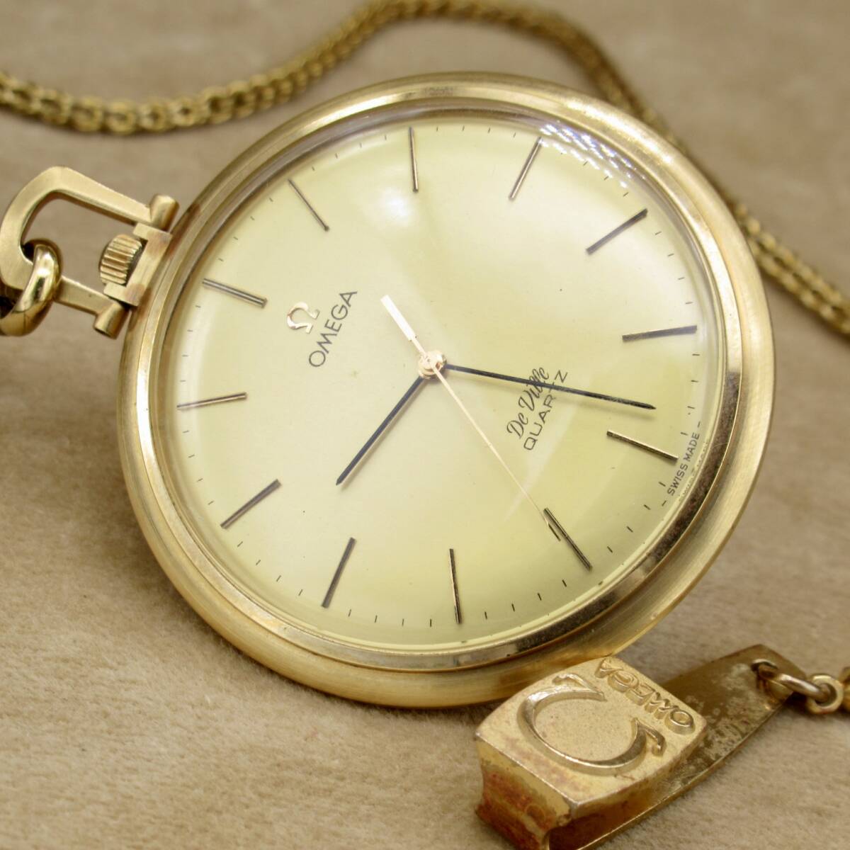 - 【ジャンク】 OMEGA オメガ 191 1753 懐中時計 ゴールド QZ QUARTZ De Ville デビル デヴィル ポケットウォッチ 46mm チェーン