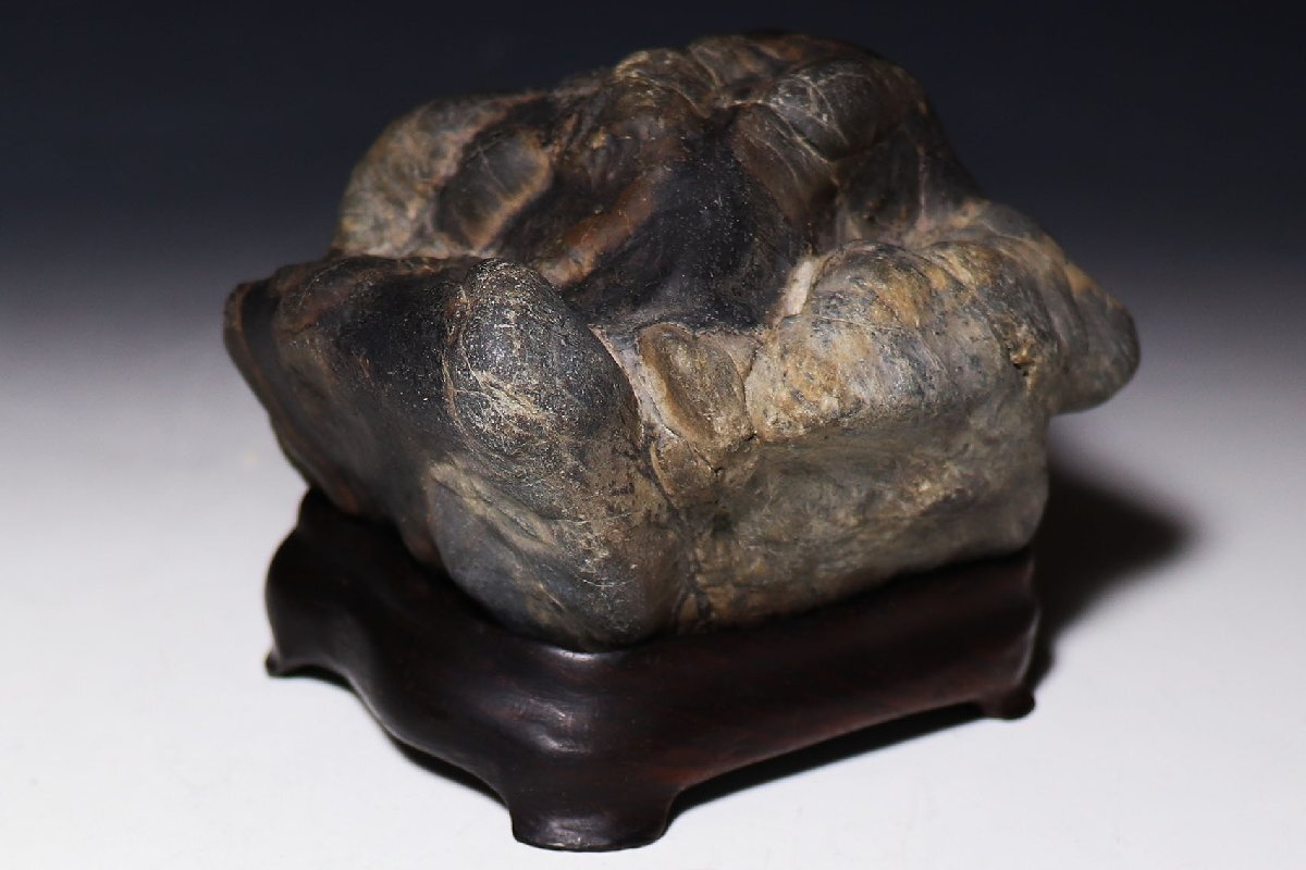 - 【桃】自然石:唐木台付太湖石水石古谷石盆石 其の参