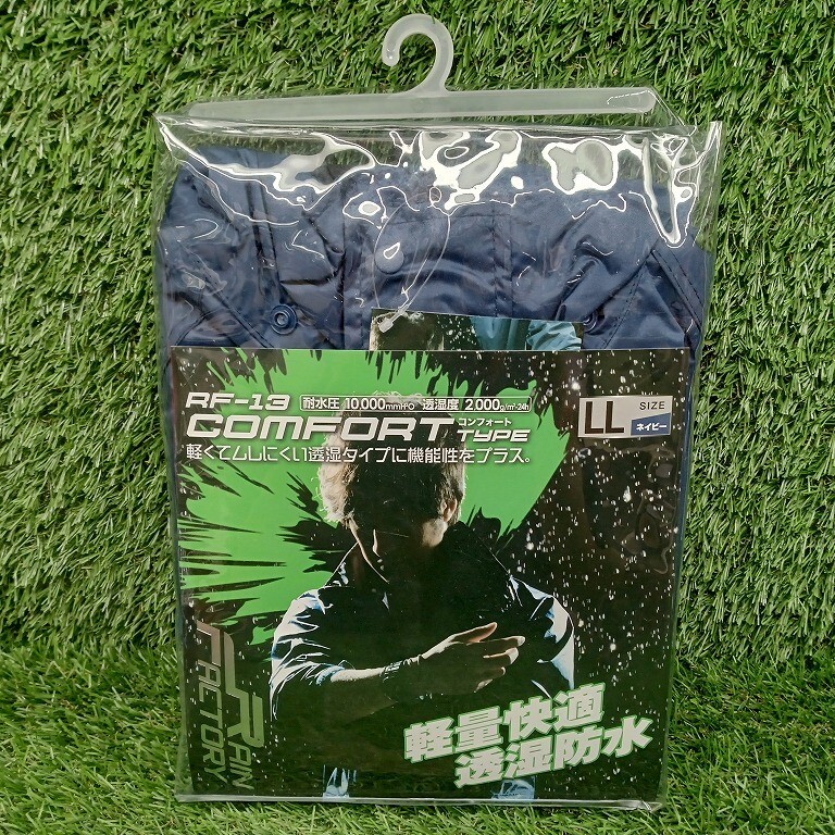 - 未使用品 おたふく手袋 レインウェア レインコート レインファクトリー コンフォートタイプ LL ネイビー RF-13 【2】