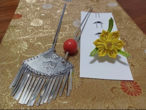 - 【GFP008526】ビラかんざし 赤玉 水仙 京都 金竹堂 舞妓 髪結い
