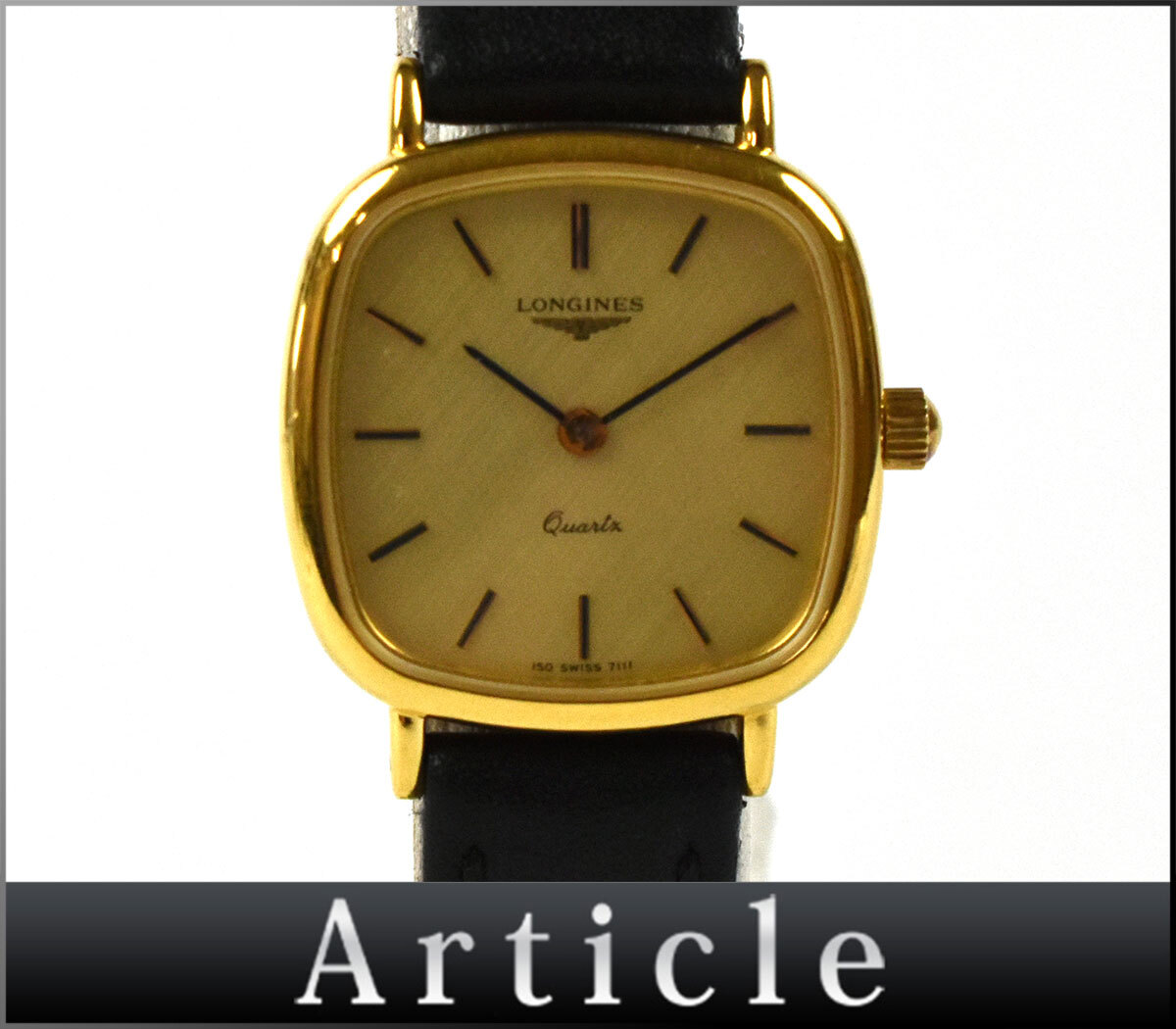 > 805257◆動作確認済 LONGINES ロンジン レディースウォッチ 腕時計 クォーツ 150 7111 2針 GP レザー 革 ゴールド ブラック/ D