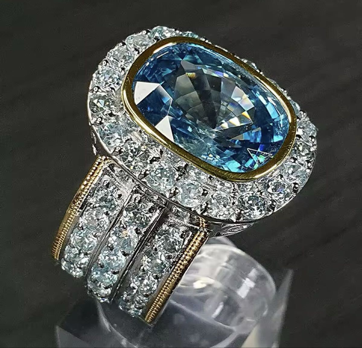 > 1円【大目玉セール!】装飾指輪 リング ★Czダイヤ アンティーク メンズ レディース ジュエリー サファイア シルバー ブルー クリスタル