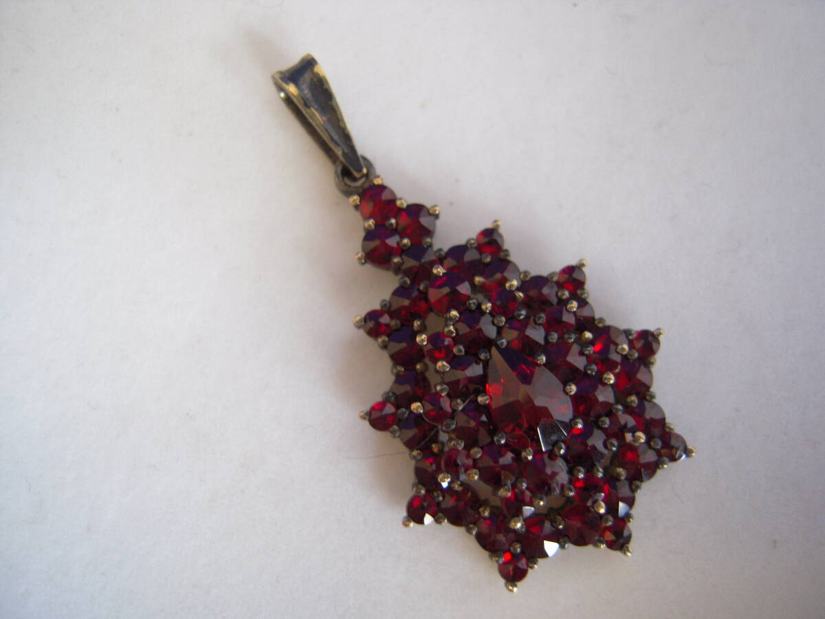 - アンティーク調 赤石ペンダントトップ ガーネットかな? 刻印900