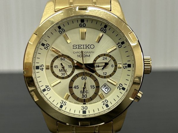 - 美品 SEIKO セイコー 4T53-00C0 クロノグラフ ゴールドカラー 100M メンズ腕時計 ブランド腕時計 クオーツ 現状