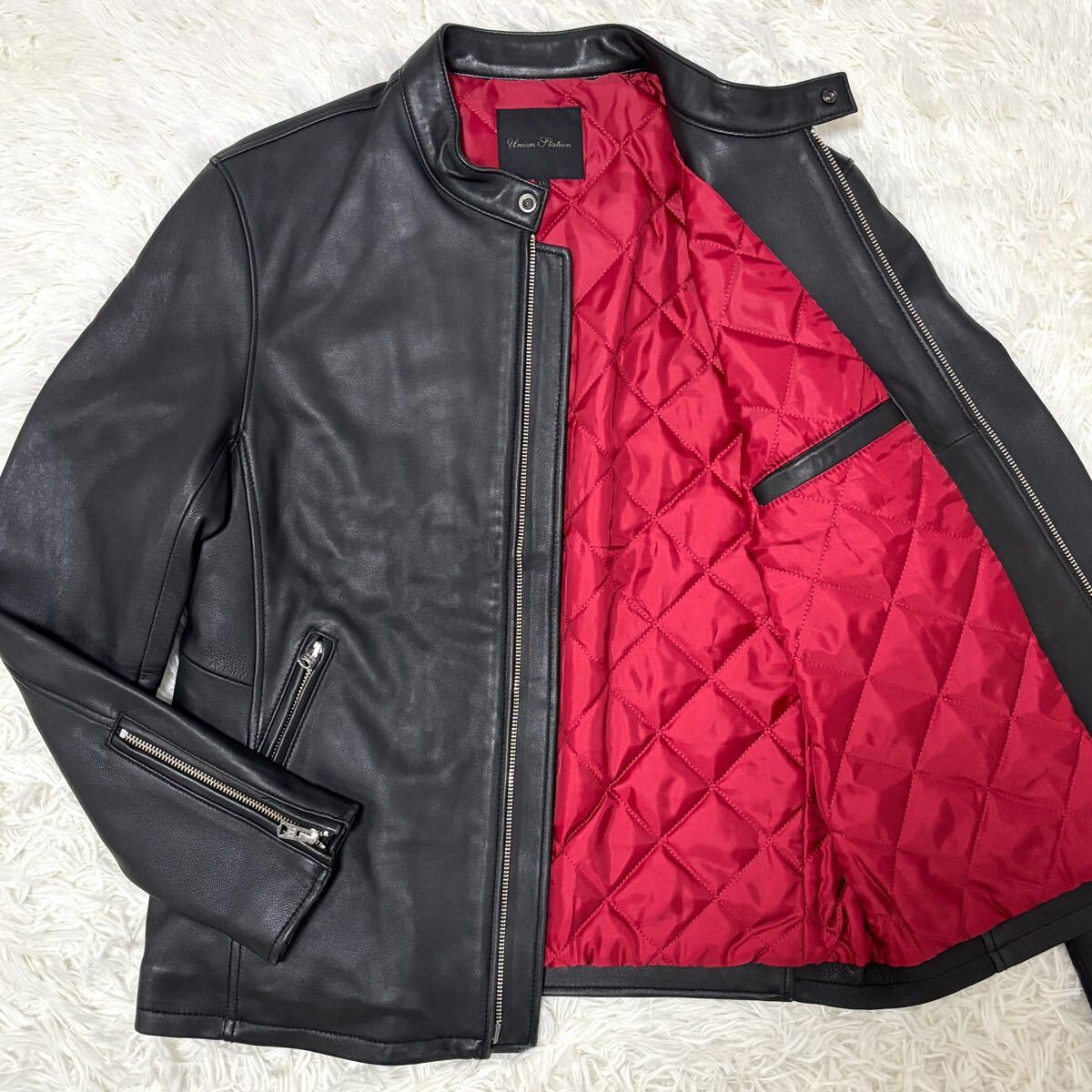 - 【未使用級】XLサイズ ラムレザー メンズビギ Union Station ユニオンステーション シングル ライダースジャケット 羊革 キルティング赤