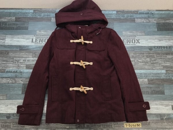 > NAVAL メンズ ウールライク フード取り外し可 比翼ジップ ダッフルコート 中綿 M ボルドー