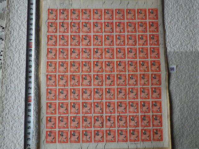 - 昭和の通常切手シート全面押印 100円丹頂 東京中央47.5.1●98●同梱大歓迎