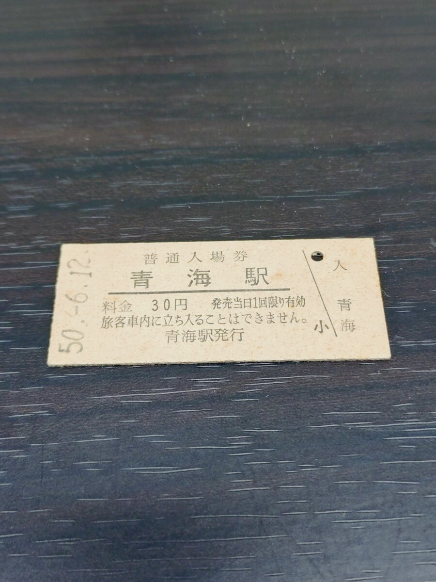 - 国鉄 硬券 普通入場券 青海駅 昭和50年