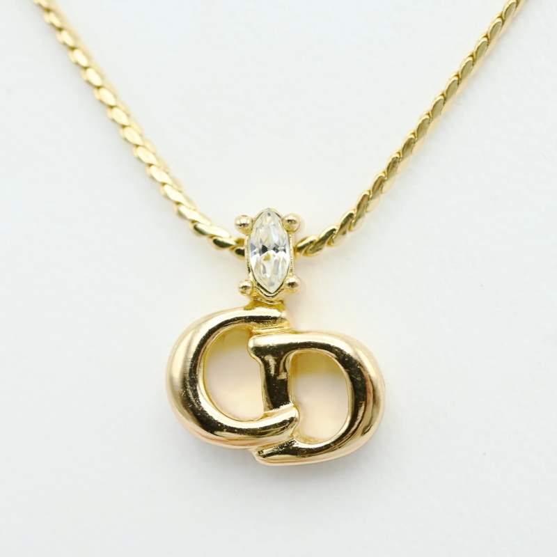 > K04-k077 Christian Dior クリスチャンディオール CDロゴ ラインストーン GP ネックレス ゴールド