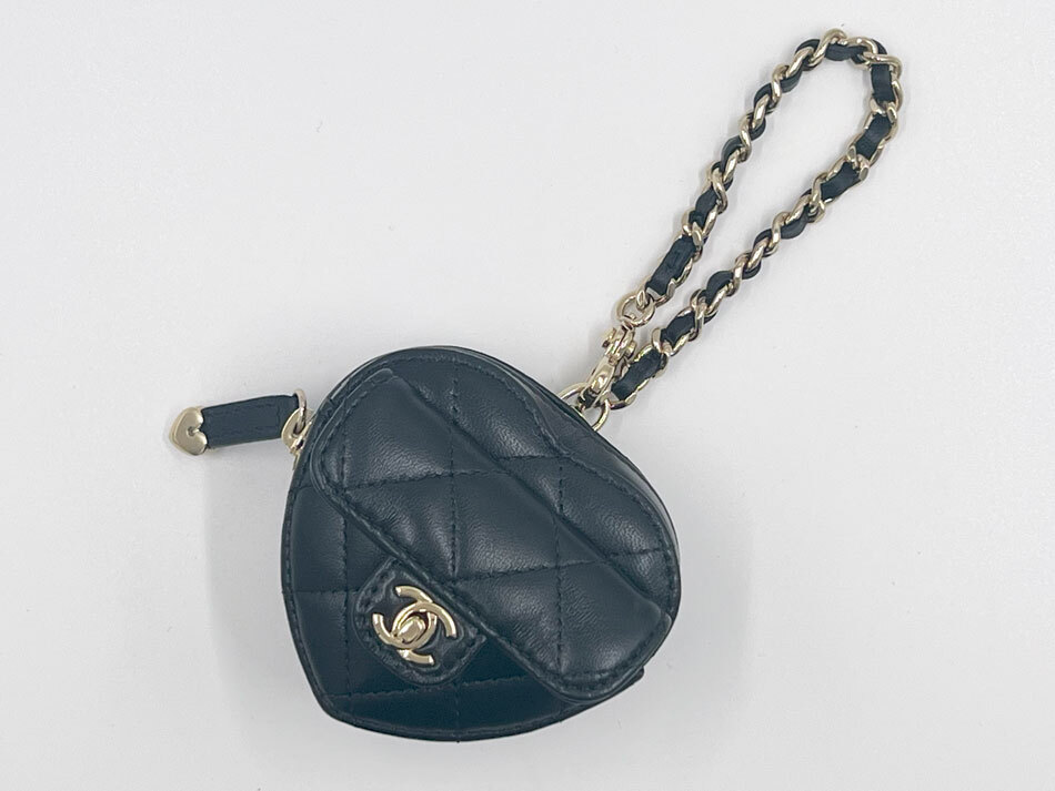 - CHANEL シャネル ミニ ハート バッグ チャーム ケース ラムスキン マトラッセ ブラック シャンパンゴールド AP4838 超美品