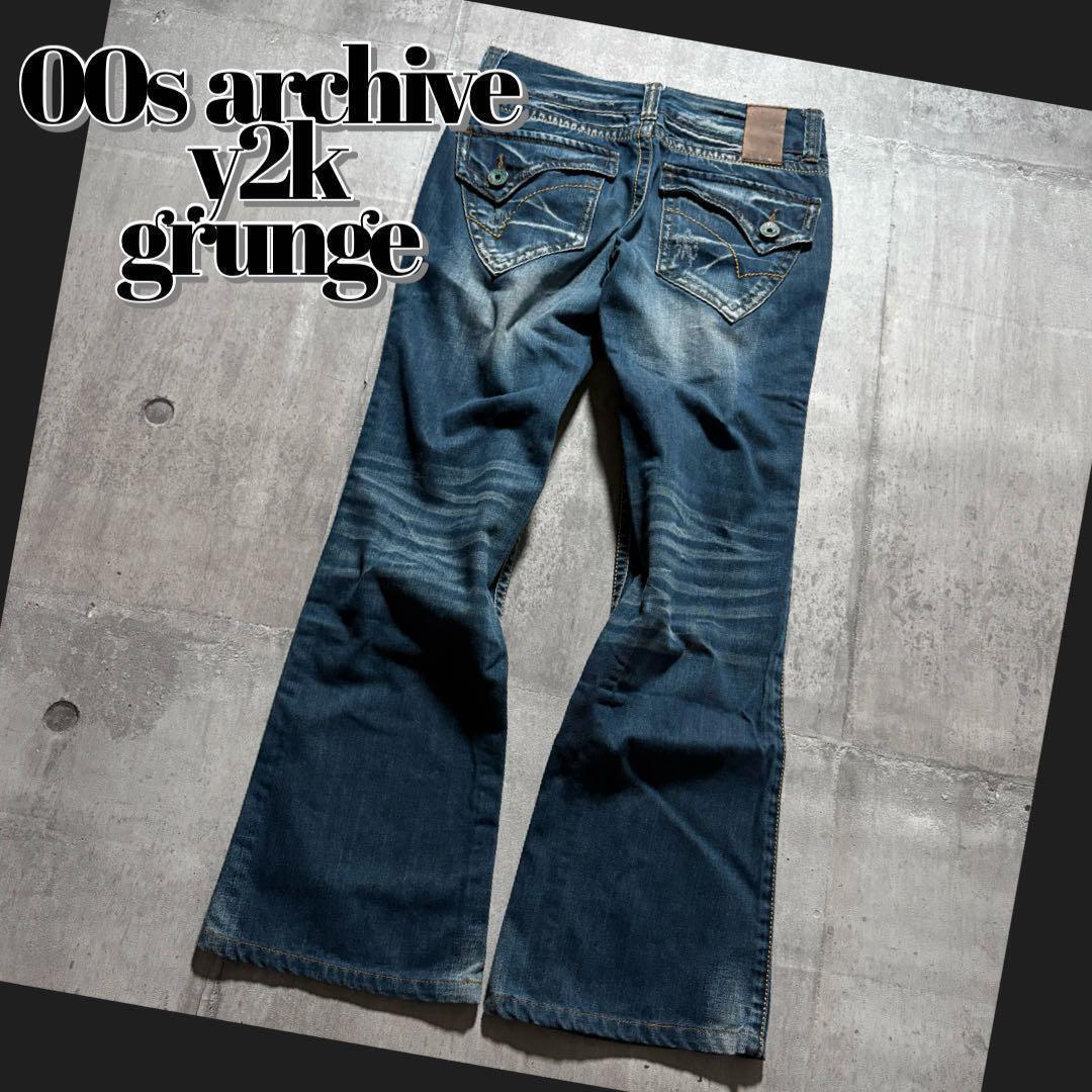 - y2kグランジ ダメージフレアデニムパンツ ブーツカット 平成ギャル ギミック