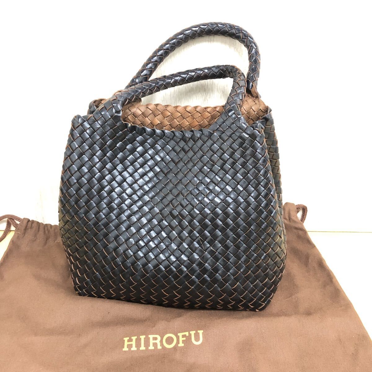 - 保存袋付★【HIROFU】ヒロフ★トートバッグ レザー ブラウン 編み バッグ レザーメッシュトートバッグ 10