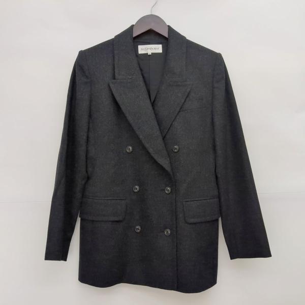 - 極美品】Yves Saint Laurent イヴサンローラン ダブルジャケット ウール カシミヤ サイズ36 ダークグレー HZF01-601 ◆2005