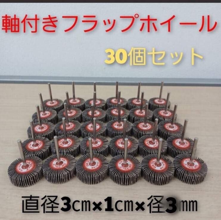 - 石⑥)軸付きフラップホイール 30個セット 植松工業 粒度320番 フラップホイール グラインダー 研磨 研削 工具 251002(F1-3