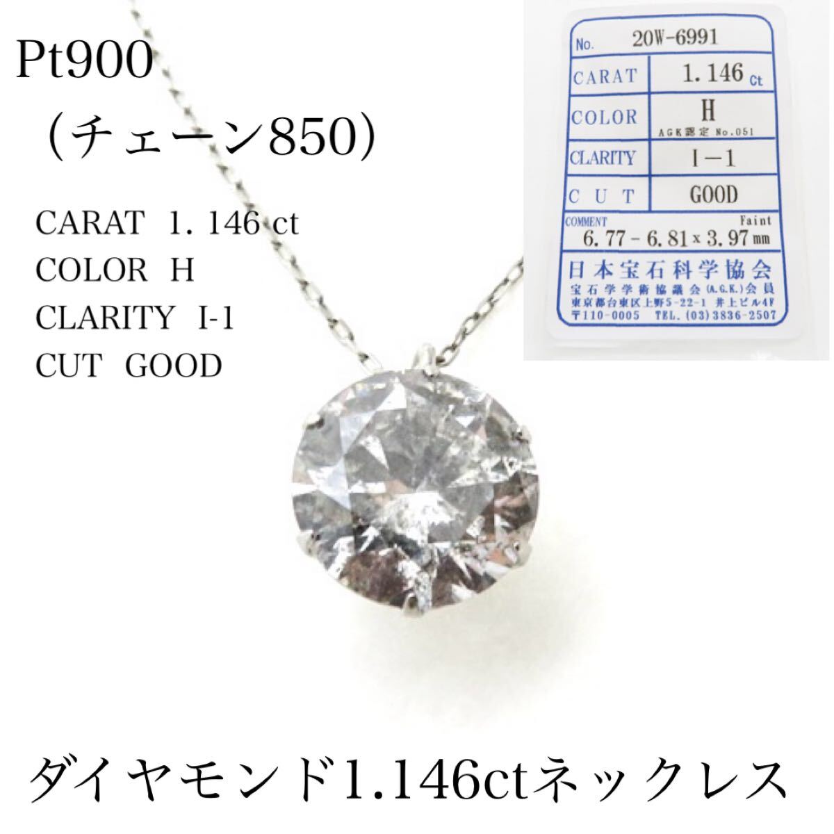 - 新品【本物保証】Pt900 天然ダイヤモンド 1.146ct ネックレス|AGKソーティング付き 大粒1ct 以上 一粒ダイヤ チェーンプラチナ850