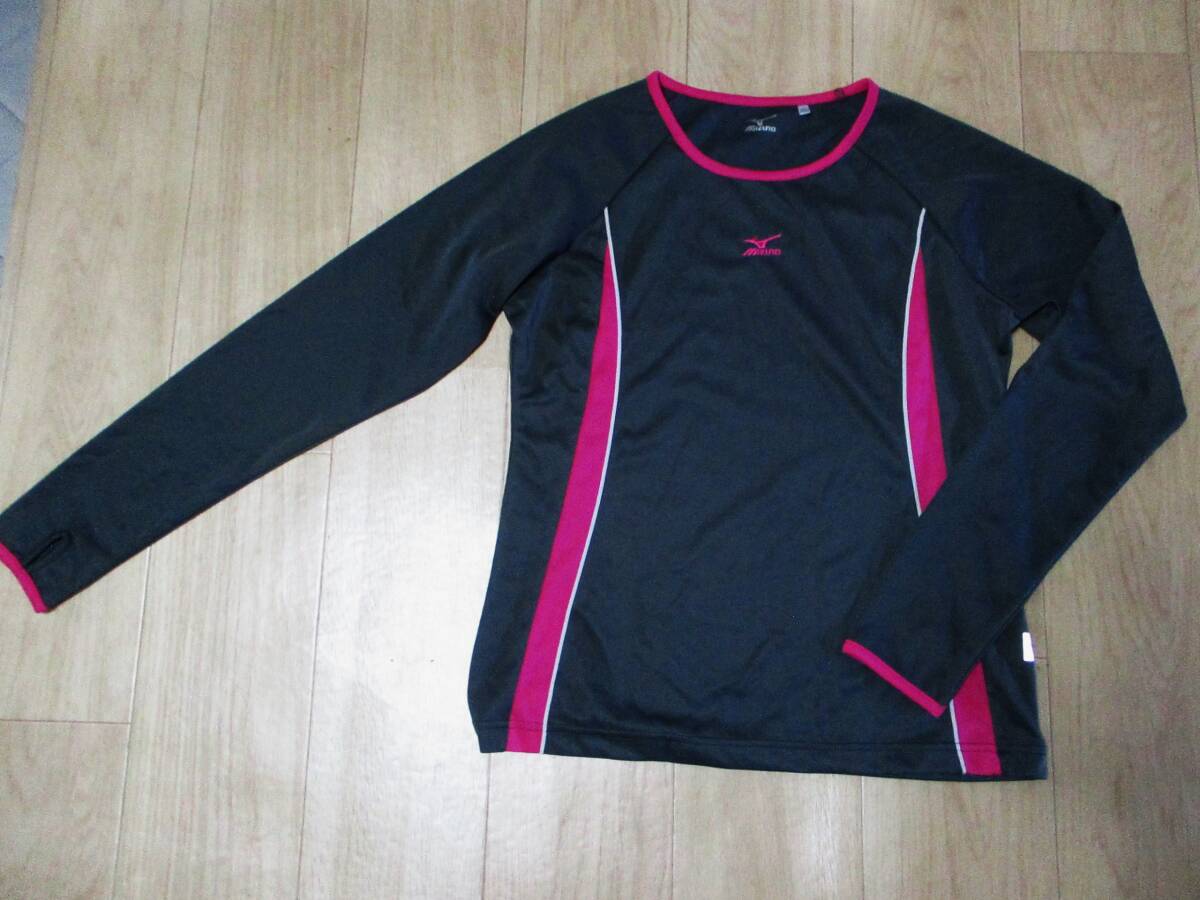 - 美品・ミズノ・ドライ長袖Tシャツ・グレー×ピンク色・サイズL