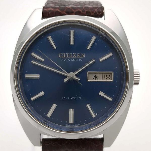 > シチズン デイデイト 4-820118 17石 自動巻き ブルー文字盤 アンティーク 腕時計 稼働品 中古 CITIZEN ◆2008