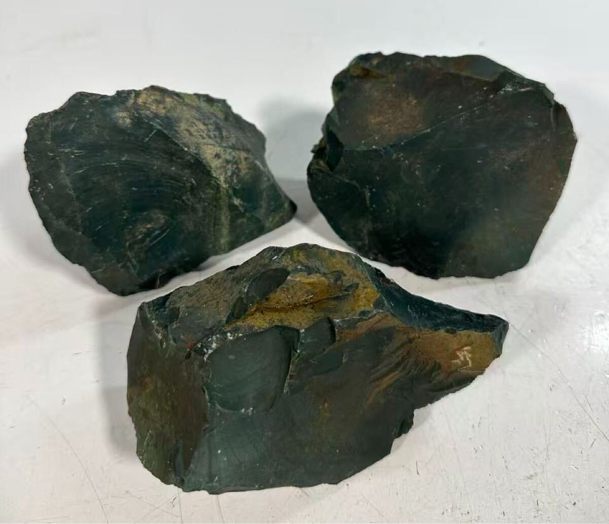 - 出雲石 青メノウ 原石 飾り石 景石 鑑賞石 置物 3点総重量約1780g