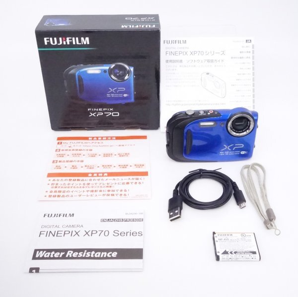 > 【極上品】富士フイルム FUJIFILM コンパクトデジタルカメラ XP70BL ブルー F FX-XP70BL [D090059A]