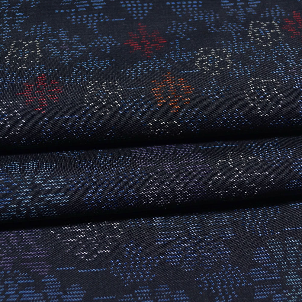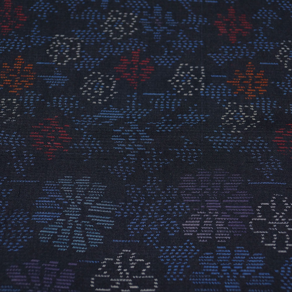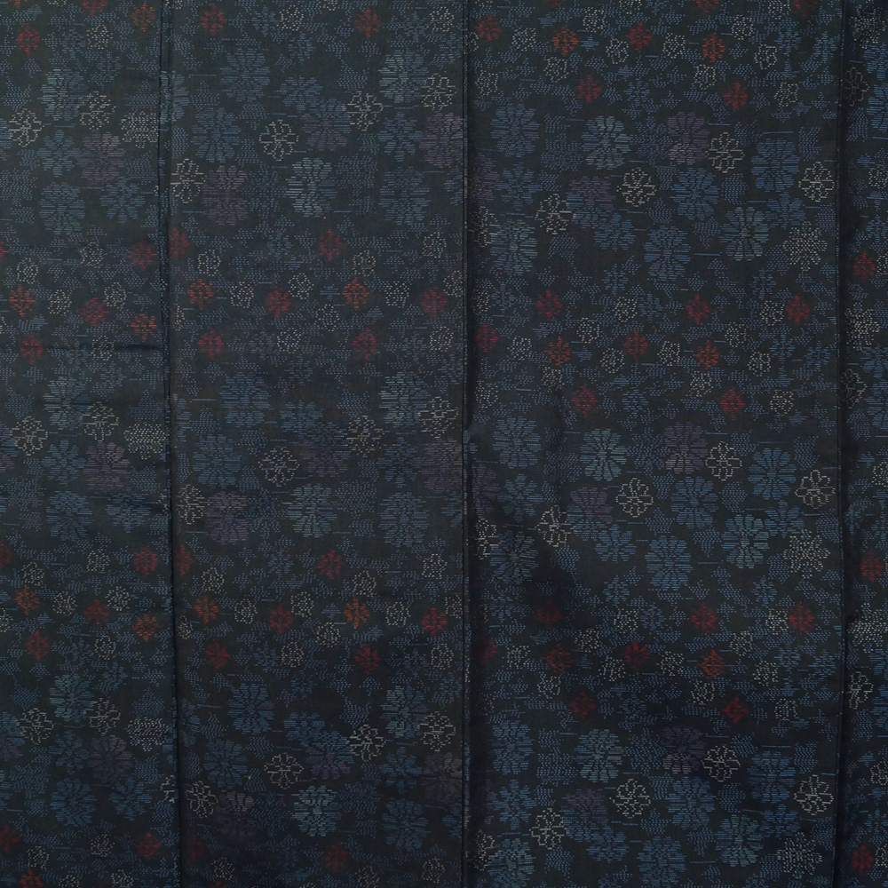- 着物セット 大島紬・名古屋帯 2点 セット 緯双 抽象菊花模様 Sサイズ 大島 紬 藍染 中古 リサイクル着物 正絹 女性和服 着物 きもの天陽