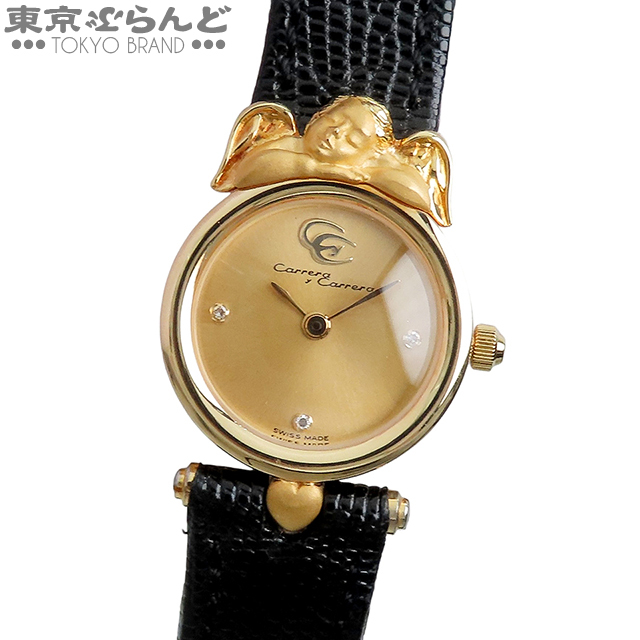 - 101801576 カレライカレラ エンジェル 114 シャンパン K18YG リザード ダイヤモンド 天使 金無垢 腕時計 レディース クォーツ式 電池式