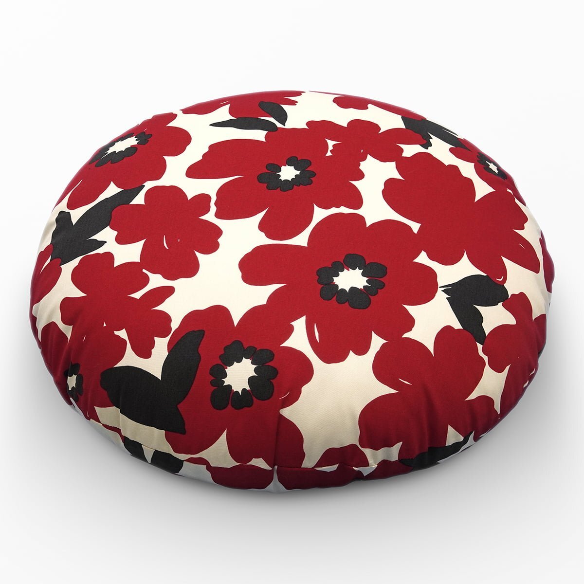 - 大きくて丸いクッション カバーセット ガワ直径約70cm アメリ レッド 綿100% 日本製 花柄 フラワー柄 赤 ボタニカル 草花 植物 BSR