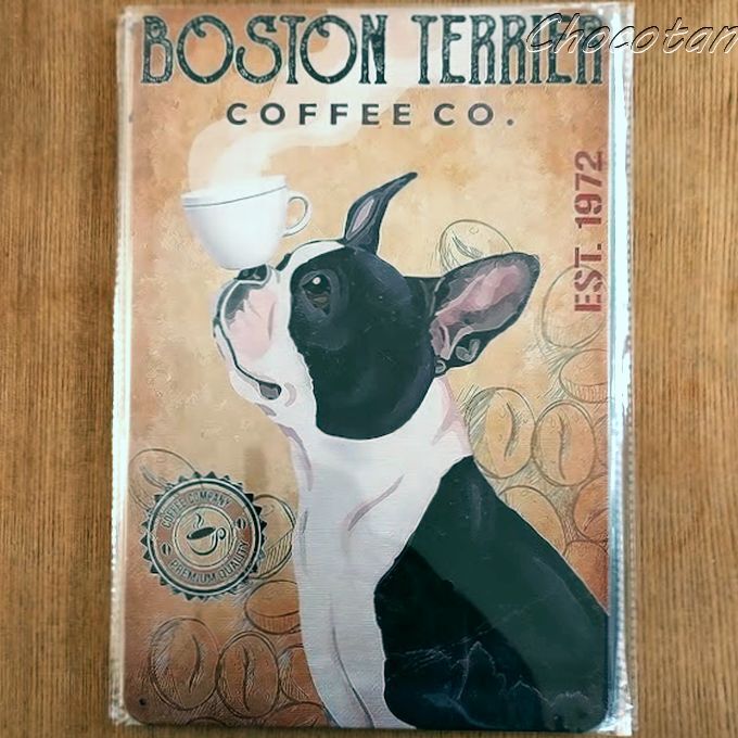 - 【送料無料】ボストンテリア ⑥ coffee メタルサインプレート メタル看板【新品】