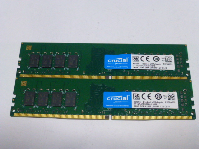 > メモリ デスクトップパソコン用 Crucial DDR4-2666 PC4-21300 16GBx2枚 合計32GB 起動確認済みです②
