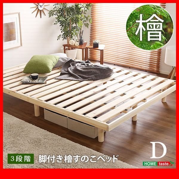 > すのこベッド★3段階高さ調整 総ひのき脚付きすのこベッド フレームのみ ダブル/国産檜無垢材 通気性抜群 低ホルムアルデヒド/特価/zz