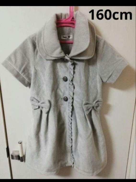 - キッズ女の子おしゃれJOJO リボン付きグレーコート 160cm グレー