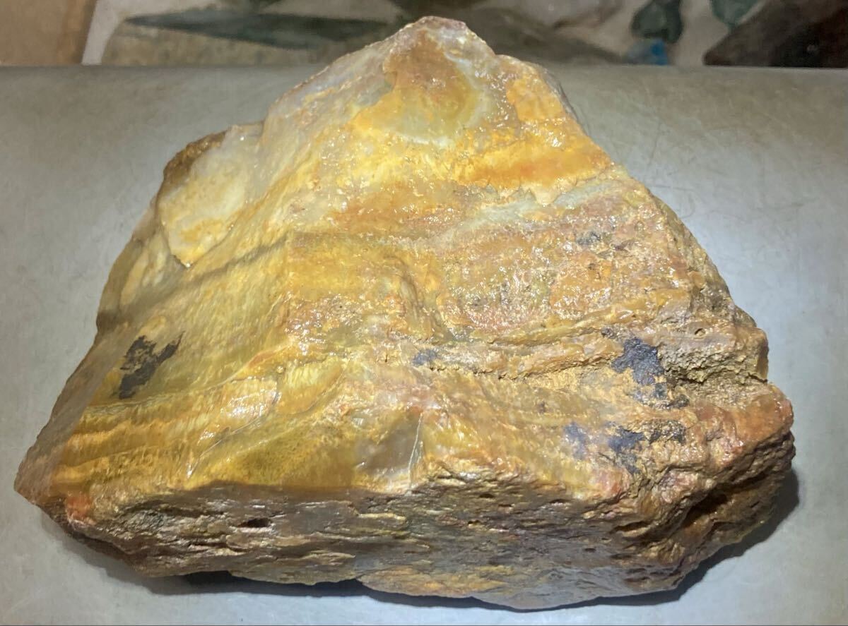 - インドネシア領南スマトラ産超巨石天然パイナップルモスアゲート原石3.26kg激レア石^ ^[gold fiber sandalwood agate]