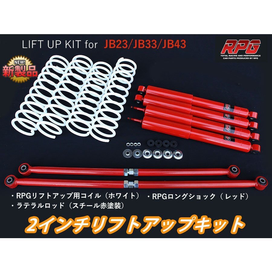 > ジムニー JB23/JB33/JB43 2インチ リフトアップキット RPGロングショック赤 ラテラル赤 コイル白