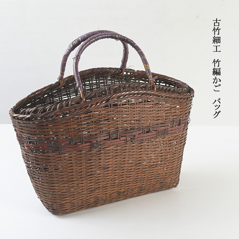 - アンティーク 古竹細工 竹編かご バッグ 古玩 OEWC