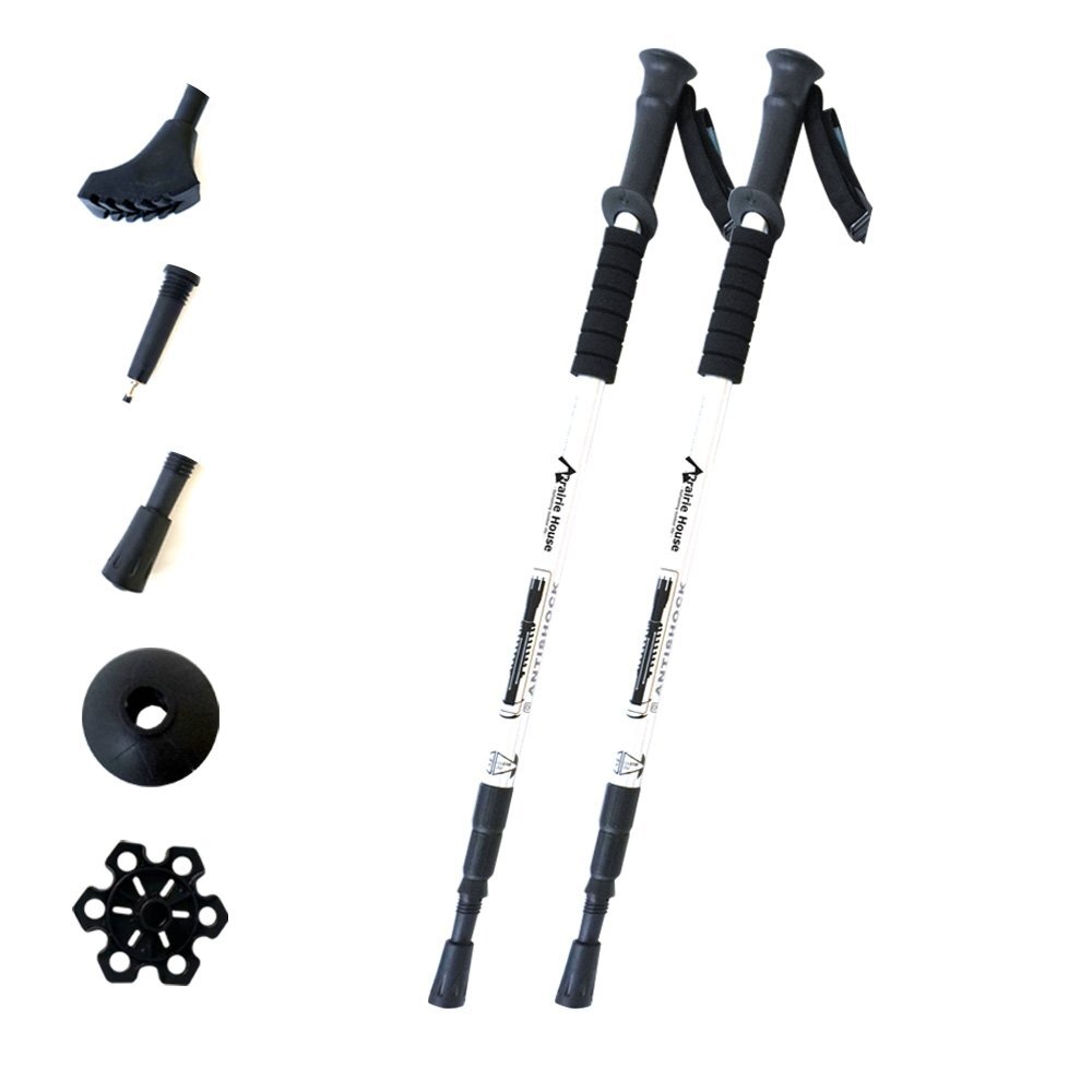 - Prairie House トレッキングポール アンチショック 2本セット アルミ合金 軽量 伸縮式 収納袋 登山 ハイキング アウトドア シルバー XO847S